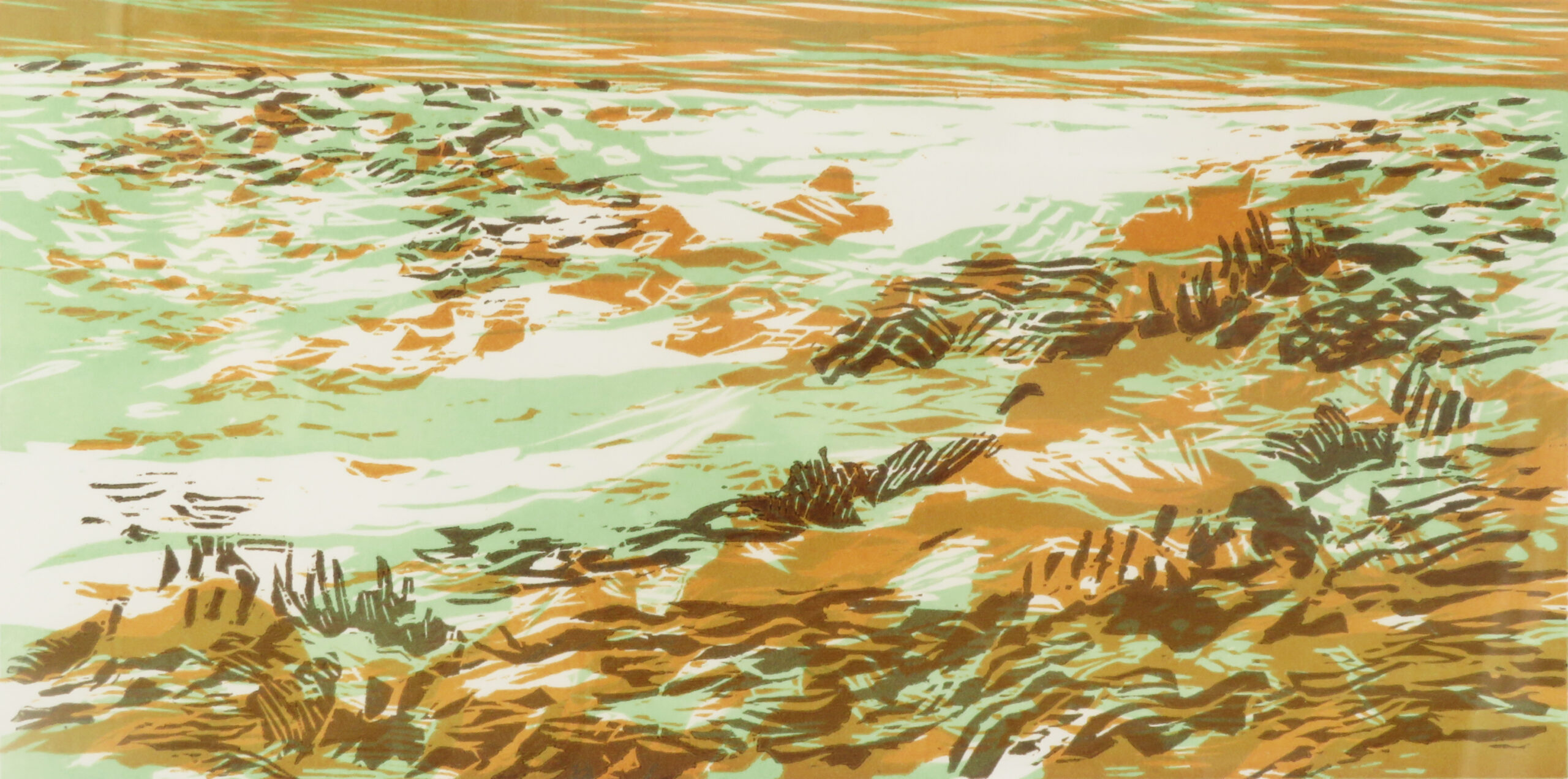Het wilde oosten, Schiermonnikoog | houtsnede in 3 keuren | 30.3 x 36 cm | oplage 5 | 2025